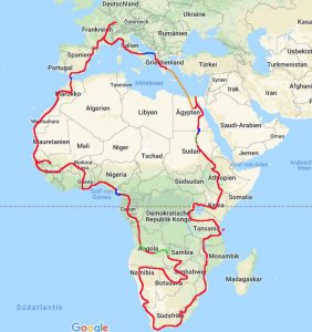 Zwei Jahren, einem Monat und zwei Wochen. Insgesamt bin ich 43.628 Kilometer gefahren, davon 38.224 Kilometer auf dem afrikanischen Kontinent. Es ging durch 40 Länder (mit Gibraltar und Monaco) davon 33 afrikanische Länder.
